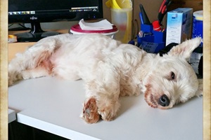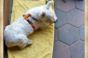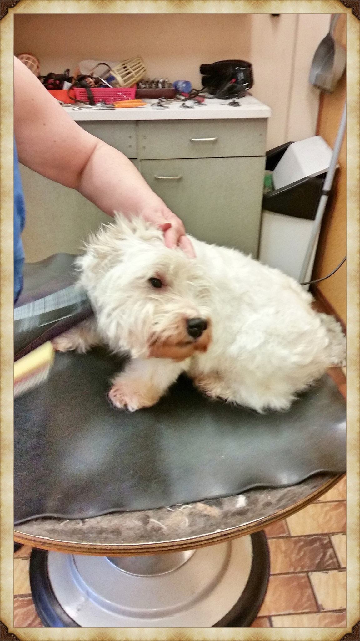 Zahnstein, Bluttest, Fell und Pfoten schneiden.... Ärzte und Friseure sind nicht unbedingt meine engsten Freunde. Und dennoch muss ich all das über mich ergehen lassen. Aber ein echter Westie läßt sich davon nicht beeindrucken, steht über den Dingen.