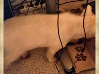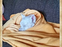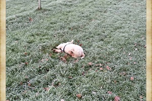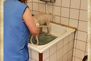 Schmutzig, dickes Fell und wohl fix verfloht kam ich zu meinen neuen Eltern. Die haben mich erstmal scheren, duschen und entlausen lassen. Wurmkur und eine Generalüberholung anbei, ein bisschen abspecken musste ich auch noch.