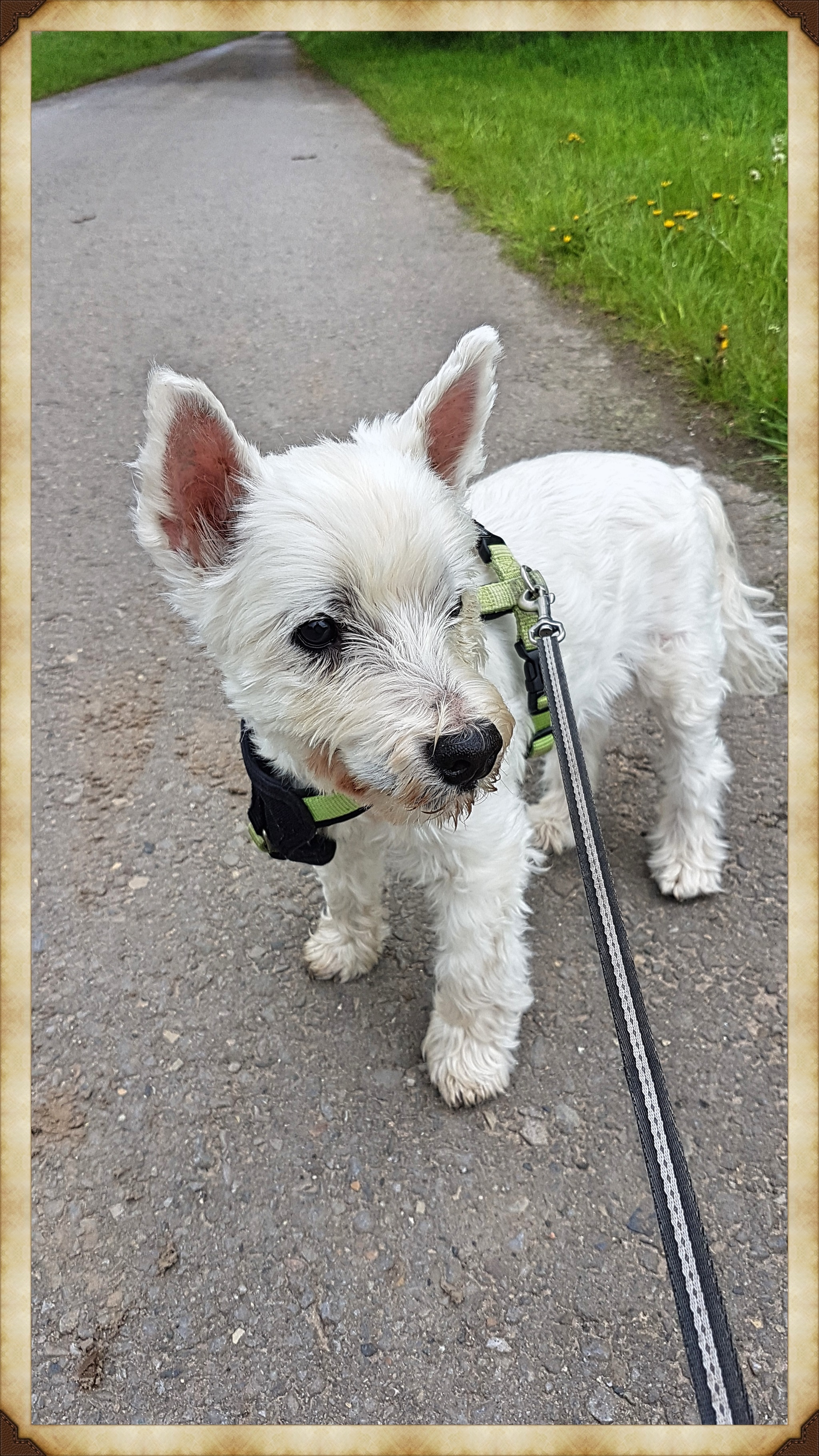 Herrchen würde mich ja öfter mitnehmen, aber ich bin eben etwas schüchtern. Aber auch neugierig und lebe gerne meinen Forscherdrang aus und schnüffel mich so übers Stallgelände. Schüchtern weil Respekt vor den Pferden und neugierig durch mein aktives Wesen als Jagd- und Beutehund.