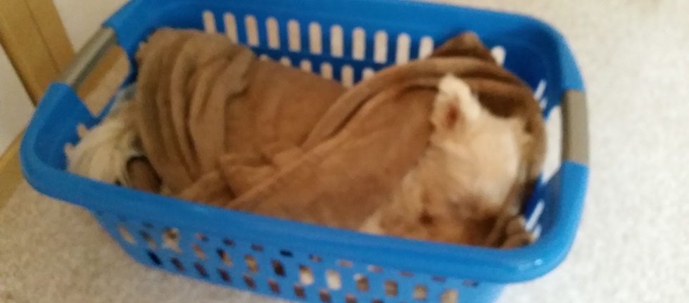 Auf dem Foto ganz oben kam ich gerade von der Zahnsteinentfernung und anderen Untersuchungen. In dem Korb weil er einfach passend groß war und Herrchen mich so bequem transportieren und ich sicher ohne "rauszufallen" aufwachen konnte.